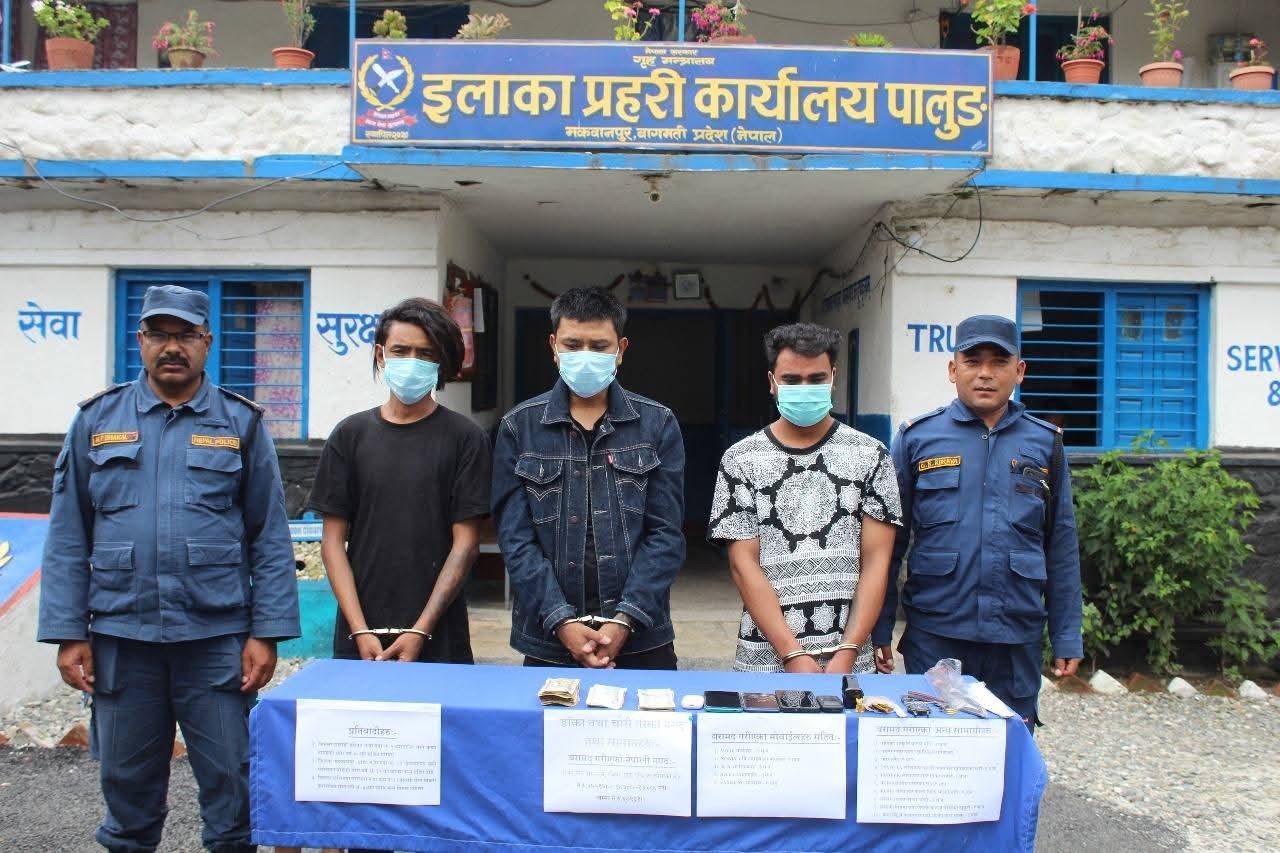 प्रहरीले उनीहरुको साथबाट नेपाली नगद ६८ हजार ९ सय ३१, विभिन्न कम्पनीका ५ थान मोबाइल, सिमकार्ड १ थान, सुनको औंठी १ थान, खुकुरी, कटर, चक्कु, एअरपोर्ट, घडी, मूर्ति, बि“ड आदि सामग्री फेला पारेको हो । पीडित बलराम केसी र बासुदेव केसीले इलाका प्रहरी कार्यालय पालुङमा छुट्टाछुट्टै जाहेरी दिएपछि चोरी तथा डा“का सम्बन्धि कसुरमा मुद्धा दर्ता गरिएको छ । पक्राउ परेका तीन जनालाई मकवानपुर जिल्ला अदालतबाट आठ दिन म्याद थप गरी थप अनुसन्धान भइरहेको प्रहरीले जनाएको छ ।